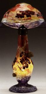 アンテルカレール(透明ガラス層の間に色ガラスを挟み込み彫刻を施す)や、ヴィトリフィカシオン(粉末色ガラスを素地に付着させる)などの技法が特徴的。