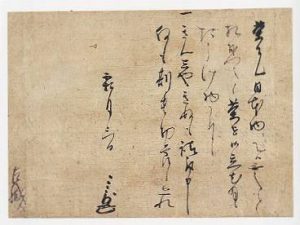 古田織部を高価買取いたします 歌人文人武人等 古田織部 ふるたおりべ 1544(天文13) - 1615(慶長20) 武将、茶人。 本名 重然(しげてる/しげなり)。通称佐介。織部の名は従五位下織部正の官位に由来する。織田信長・豊臣秀吉に仕える。千利休に弟子入り、利休七哲の一人と称される。 織部焼、織部流創始者。1615年豊臣氏に内通したとの嫌疑により切腹。享年72。弟子に小堀遠州・上田重康ら。 古田織部のお問い合わせ/ご相談 古田織部の作品 古田織部「書状」 古田織部「三月十五日付消息」 古田織部「消息」 古田織部「三月十五日付林道休宛消息」 古田織部「堀親良宛消息」 古田織部「三月十四日付前田利長宛消息(茶会への誘いを承諾する手紙)」 古田織部「霜月三日付消息」 chevron_left chevron_right 特集 中国陶器やバカラ花瓶も買取りしました(船橋市) chevron_right マンションの引越しに伴い茶道具他を出張買取しました(東村山市) chevron_right 額150点を買取させていただきました(埼玉県熊谷市) chevron_right 終活に身の回りを整理したいとのご依頼でピカソ他を買取させていただきました(相模原市) chevron_right 百貨店美術部で買われた作品を高額査定いたしました(港区) chevron_right 日本画・油絵・版画などたくさんの額を買取させていただきました(鎌倉市) chevron_right お茶道具や絵画などご自宅地下室に保管の一式をお買取させていただきました(東京都三鷹市) chevron_right 田中一村の昭和20年代に制作された花鳥図について【金子の動画から】 chevron_right お客様の保管倉庫に伺い出張買取いたしました(横浜市) chevron_right 鈴木治の前衛陶芸:走泥社の精神と市場価値 chevron_right 上村松園の「焔」の魅力を探る chevron_right 千住博とその芸術的遺産 chevron_right 買取鑑定会を岐阜で開催いたしました(2025/4/18-19) chevron_right 買取鑑定会を福岡で開催いたしました(2025/3/1-2) chevron_right 香月泰男の絵の値段について chevron_right 香月泰男の買取鑑定動画集 chevron_right 香月泰男の素描やデッサンを高額評価で回答。鑑定も代行します! chevron_right 香月泰男の晩年の作品の魅力とその評価 chevron_right 美術年鑑の見方・調べ方。号いくらの値段を信じてはいけません! chevron_right 山梨で開催の買取鑑定会終了しました(2024/12/20-21) chevron_right 掛軸・横山大観の作品を見極めるおすすめの方法 chevron_right 鏑木清方は三大巨匠の中で何故偉いのか chevron_right 須田剋太の抽象画と具体画について chevron_right 掛軸の鑑定・査定の違いとは? chevron_right 横山大観の箱書について chevron_right 片岡球子の額といえば「岡村多聞堂」です! chevron_right 厚塗りの日本画作品に起こりやすい現象 chevron_right 三大美人画家のひとり、伊東深水とは? chevron_right 買取鑑定会を山梨で開催します(2024/12/20-21) chevron_right 魯山人は「友斎箱」(ゆうさいばこ)の作品が名品! chevron_right chevron_left chevron_right 歌人文人武人等の取扱作家 山岡鉄舟 歌人文人武人等 吉田松陰 歌人文人武人等 夏目漱石 歌人文人武人等 森鷗外 歌人文人武人等 福沢諭吉 歌人文人武人等 樋口一葉 歌人文人武人等 柳沢淇園 歌人文人武人等 吉井勇 歌人文人武人等 藤原定家 歌人文人武人等 松花堂昭乗 歌人文人武人等 野口雨情 歌人文人武人等 高村光太郎 歌人文人武人等 彫刻家 正岡子規 歌人文人武人等 高野長英 歌人文人武人等 松平不昧 歌人文人武人等 華岡青洲 歌人文人武人等 柳宗悦 歌人文人武人等 木村蒹葭堂 絵師など(江戸まで) 歌人文人武人等 伊達政宗 歌人文人武人等 松永耳庵 歌人文人武人等 吉田茂 歌人文人武人等 沢庵宗彭 歌人文人武人等 豊臣秀吉 歌人文人武人等 西郷南州(隆盛) 歌人文人武人等 若山牧水 歌人文人武人等 松尾芭蕉 歌人文人武人等 一山一寧 歌人文人武人等 勝海舟 歌人文人武人等 良寛 歌人文人武人等 書家 chevron_left chevron_right 買取品目 掛軸 中国美術 古美術 工芸 彫刻 日本画 春画 骨董品 武具 洋画 浮世絵 版画 現代アート 絵画 茶道具 西洋絵画 ジュエリー・貴金属 買取サービス