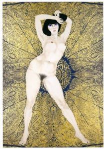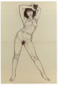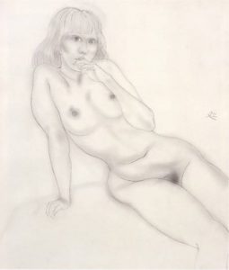 加山の興味はさらに驚くべきことにヌードにも行きます。裸の女たちを捉える加山又造の線は、それぞれの女性の素顔というよりは、美の原点を探る手付きでした。女性たちは一種の「モード」として再構成されたもののように見えます。日本画の一種の伝統ともなった「美人画」の系譜とは遠く離れた超モダンとも言うべき加山のヌードは、他のどの画家にも似ていないものでした。1970-80年代のこのテーマの作品は、ほとんど市場に出てきませんが、鉛筆デッサンなどは多数あり、こちらは数十万です。比較的売買しやすい値段と言えるでしょう。
