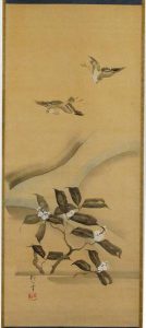 姫路城主酒井忠迎の次男として江戸に生まれる。若い時より能、茶、俳諧を嗜み一流の文化人として成長する。画は初め狩野高信から狩野派を学び、南蘋派の花鳥画、浮世絵、円山派、土佐派など広く研究した。1797年(寛政9)に出家し抱一と称す。寛政期半ばより尾形光琳を知りその画風に傾倒、模写などによってその装飾的表現を学んだ。光琳とは異なる抱一の特徴は、俳諧的な情緒感・詩情性である。眼前の出来事を瞬時にとらえてその因果関係を探ったり、自然の中の草花の一瞬をとらえ、その前後の出来事を想像させる手法は、文学的な叙情性にあふれている。それは抱一を祖として始められた「江戸琳派」の特徴となった。