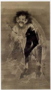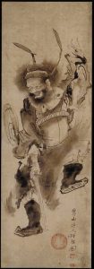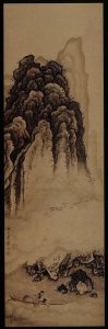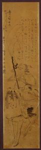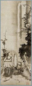 江戸時代の絵師。京都に生まれる。「丹波屋」と号する商人の子として生まれ、本姓を三浦と称した。高田敬輔に師事したとの説があるが、この事実を立証する確たる証拠はない。青年期から壮年期にかけて、伊勢や播州地方で旺盛な作画活動を続けながらも京都での活動基盤をもたず、四十歳代になってようやく京都に定住するようになった。江戸時代の画史においてすでに「異端」「狂気」の画家と位置付けられていた蕭白の絵は、仙人、唐獅子、中国の故事など伝統的な画題を扱いながら、その画題を醜悪、剽軽に描き出すなど表現は型破りで破天荒なものであり、類い稀な想像力により見る者に強烈な印象を与え、独自の画風を確立した。色彩もまた強烈だ。極彩色の作品はほとんどなく、多くは水墨を基調としながらも、添景の人物に施された赤、青、黄の原色に近い着彩が視覚を刺激し、濃厚な色彩を感じさせる。代表作に「林和靖図屏風」「寒山拾得図」「雪中童子図」「群仙図屏風」などがある。