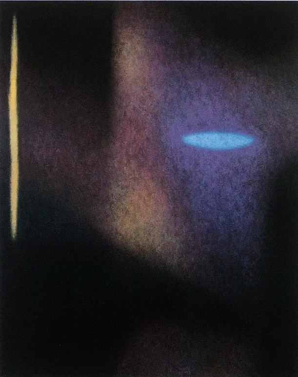 昭和34年(1959)に発表された「仮象」以降、杉山の絵画は一時、抽象表現へと傾いていきます。通常日本画では用いないカンヴァス(麻布)を支持体とし、岩絵具に細かい砂などを混ぜるなど、マチエールの追求に取り組みました。