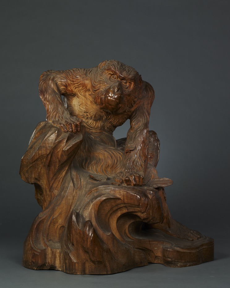 光雲の代表作として、1893(明治26年)のシカゴ万国博覧会に出品され優等賞を受賞した《老猿》があります。本作は「その後の明治前半期における日本の伝統的木彫の進路を方向づけた作品」として現在では重要文化財に指定されています。