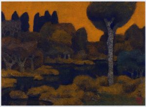 高山は戦後まもない1946年頃、山本丘人よりゴーギャンの伝記を勧められて読み、その生き方に大きな感銘を受けます。以後彼の作品にはゴーギャンのような鮮やかな色面構成がみられるようになりました。同年、第2回日展で裸婦ふたりを描いた「浴室」が特選を受賞。続いて49年、第5回展で「少女」が再び特選となり、徐々に画壇での地位を確かなものにしていきました。この頃から独自の幻想的な画風が定着していきます。