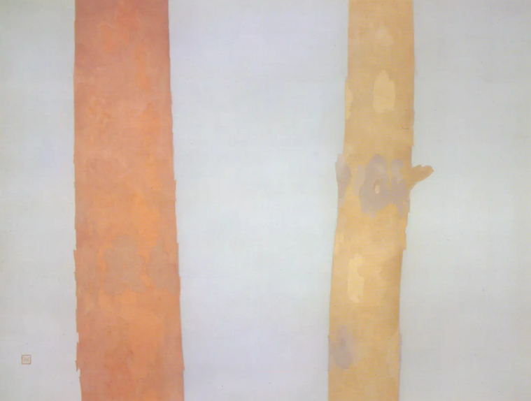 昭和22年(1947)第三回日展出品作の「赤松」に始まる戦後の画業からは、単純化された構図・モチーフと、その研ぎ澄まされた精神性のさらなる深化がうかがえます。昭和26年(1951)年、第六回日展出品作である「鯉」とその他諸作に対し第七回日本芸術院賞を受賞し、昭和41年(1966)には文化勲章を受章して文化功労者に選出されるなど、名実ともに第一線の日本画家として認められました。