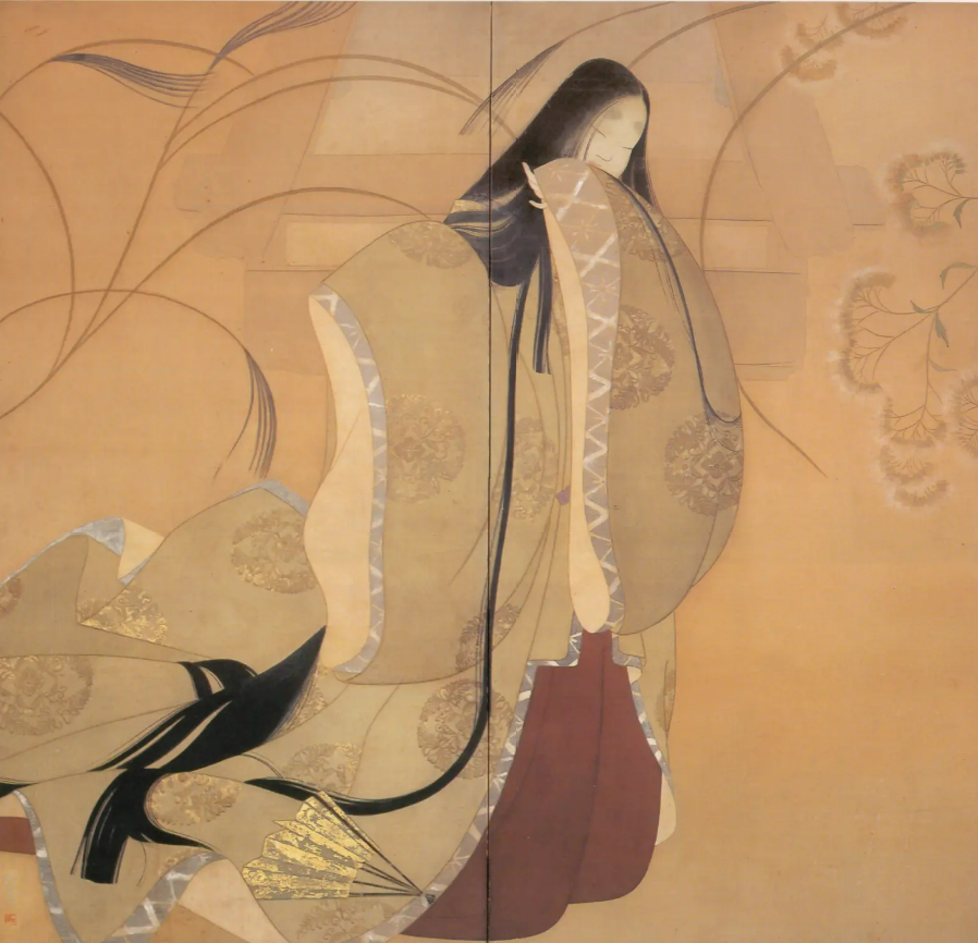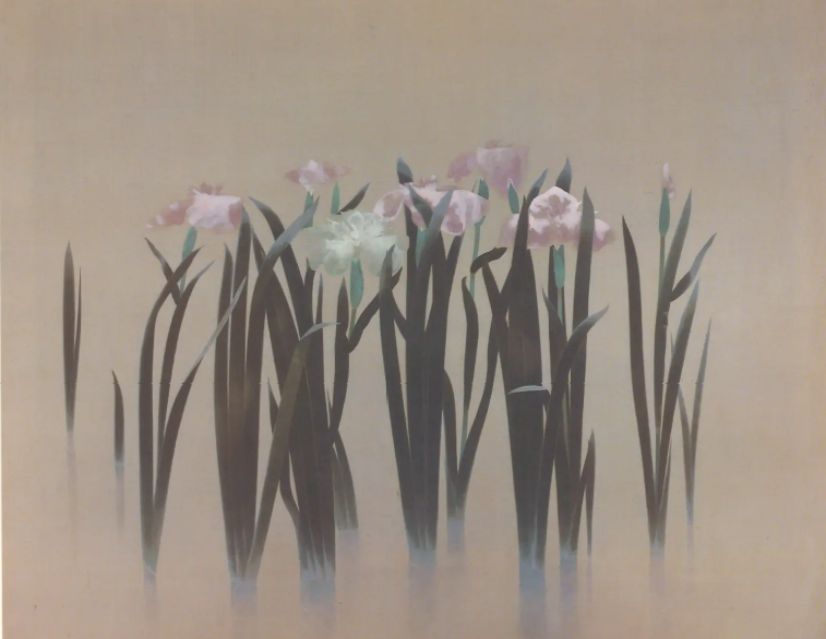 さらに試行錯誤を試みた後、昭和14年(1939)の第三回新文展出品作「菖蒲」にみられる、それまでの細密描写から画面構成を簡潔にし、装飾性を帯びた画風を示すようになりました。
