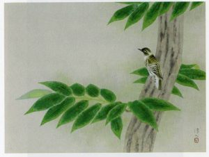 上村が花鳥画を制作するきっかけをつくったのは、祖母・松園が晩年を過ごした「唳禽荘」でした。淳之はそこで鳥を実際に飼育して、自らの作品の画題としていました。