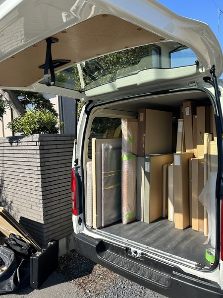 お庭で見守っていた飼い猫のクウちゃんも何だか寂しそうでしたが、約3時間かけて車2台に積み込み
